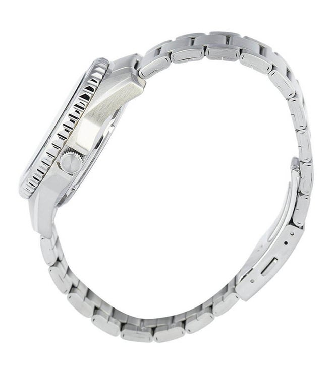 Amaze everyone around you by wearing this men's analog watch from the collection by ALBA. The orange round dial is protected by a mineral crystal. It features crown for time adjustment. The stainless steel strap comes in a silver hue that further elevates the look of the timekeeper. Besides, it is completed with a fold-over clasp with safety clasp to ensure a secure fit on the wrist.