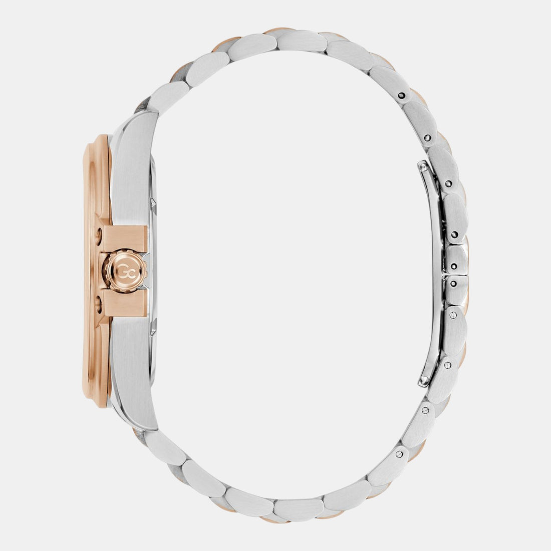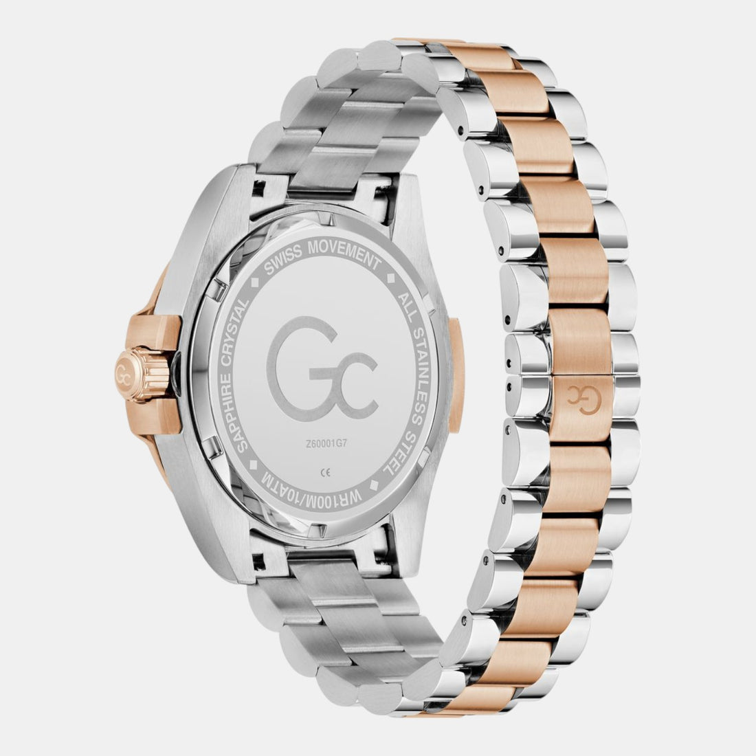 Command attention with the distinguished Gc Bolt. This 43mm timepiece combines striking silver with rich rose gold tones, featuring the collection's emblematic wings and signature screws. The deep dark blue sunray dial creates a bold statement, complemented by the day/date display at 3 o'clock. The elevated bracelet with elegant curves ensures both comfort and sophistication - the perfect expression of sporty-chic style for the modern gentleman.