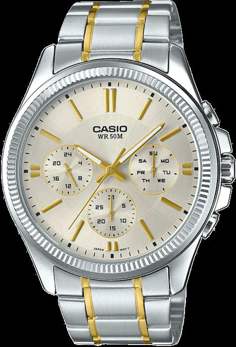 If you are a watch aficionado you will surely love this men's analog watch from the Enticer collection by Casio. Operated by a quartz movement, the silver round dial features stick hour markings and a crown for time adjustment. The stainless steel strap flaunts an elegant silver hue that accentuates the look of the watch.