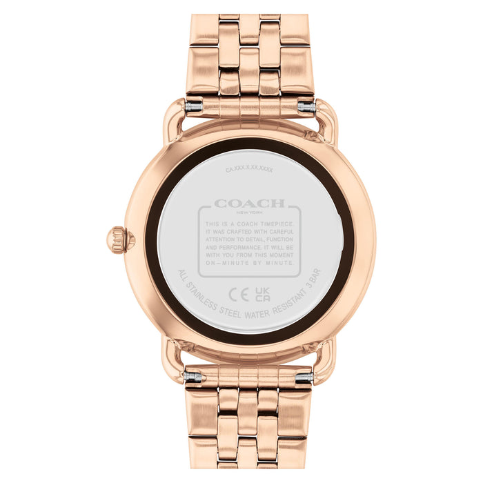 This luxurious Coach watch boasts a sleek and stylish design, with a mesmerizing silver white dial and a rose gold-plated steel strap. Measuring 36 mm in diameter and 7.5 mm in thickness, this watch is both elegant and functional. With a quartz movement and a 3 ATM water resistance, it is the perfect accessory for any fashion-forward woman. The band width of 18 mm and the push-button deployment clasp add to its convenience and comfort. Don't miss out on the opportunity to add this stunning timepiece to your collection!