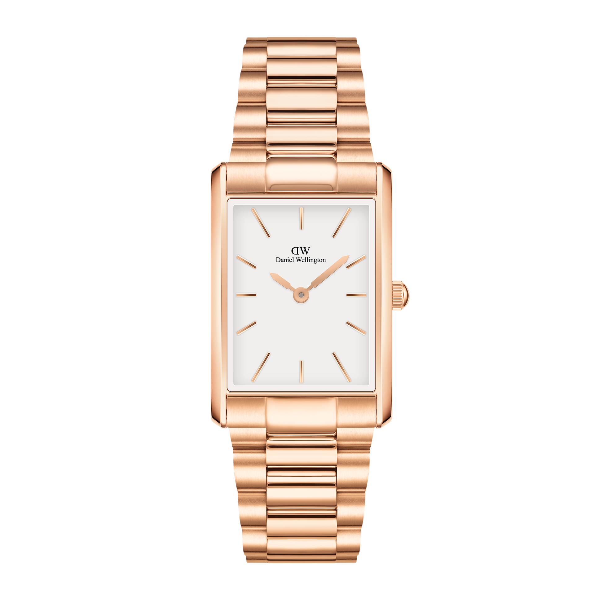 With sleek geometric edges and two sizes to choose from, our Bound collection brings perfect symmetry to your wrist. The curved rectangular case of this rose gold watch matches the exact width of its 3-link strap—giving you a seamlessly integrated dial.