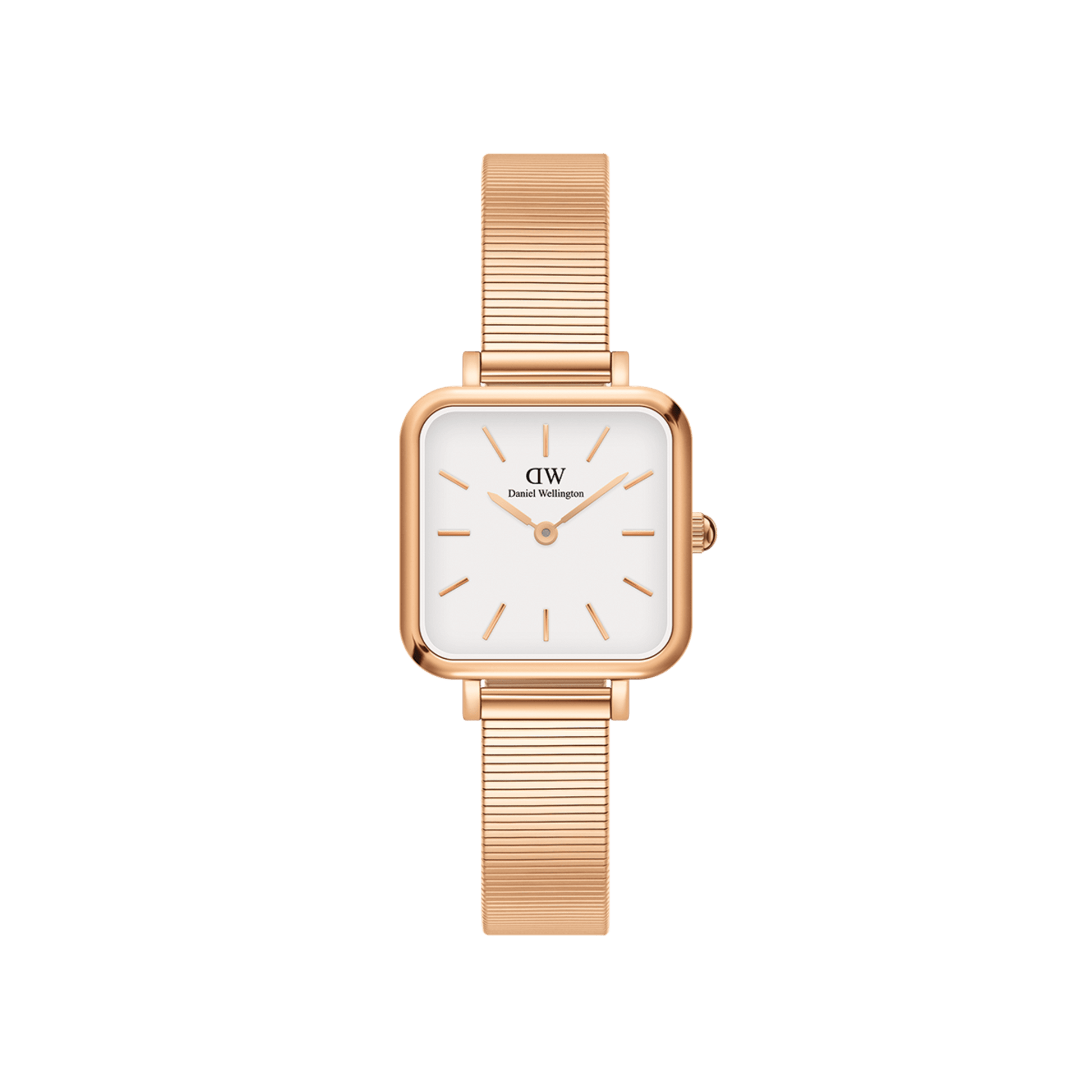 The Quadro Studio features a delicate and petite, white square dial, complemented by the sleek Piano strap. Crafted with polished stainless steel and available in a refined rose gold plating. A retro statement with timeless appeal.