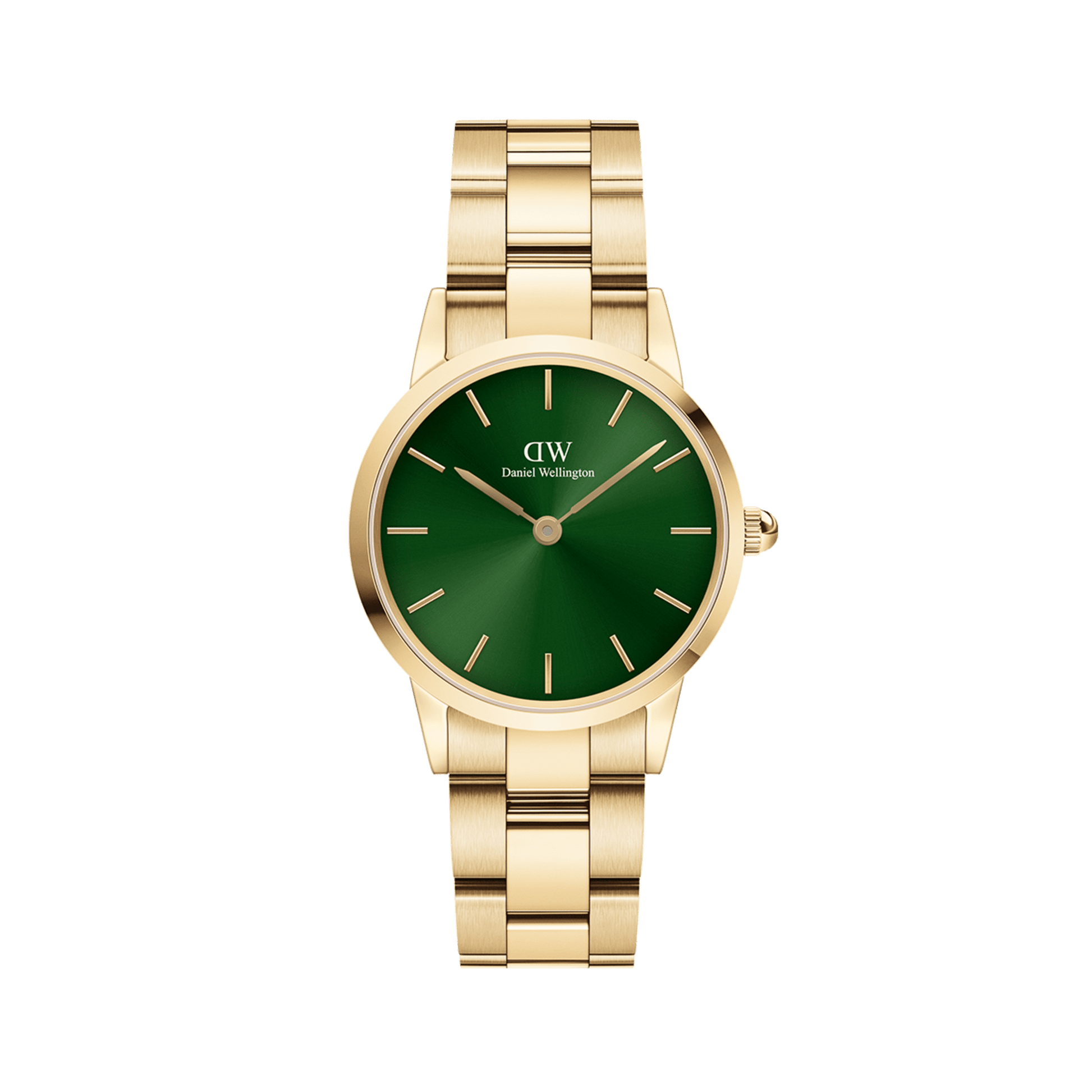 The Iconic Link Emerald is here to cause trouble, to shake up a fashion world dominated by minimalism and countless shades of grey. With its unapologetically green watch face, this watch proves that color is an intense and rich experience we shouldn’t deprive ourselves of. The gold link bracelet, made from stainless steel with a lovely shimmer, perfectly frames the emerald green dial and rounds out this women’s gold watch. All in all, it’s one of our most daring gold watches with green dials. Women's gold watch with a green watch face. Paired with a gold link bracelet and buckles.