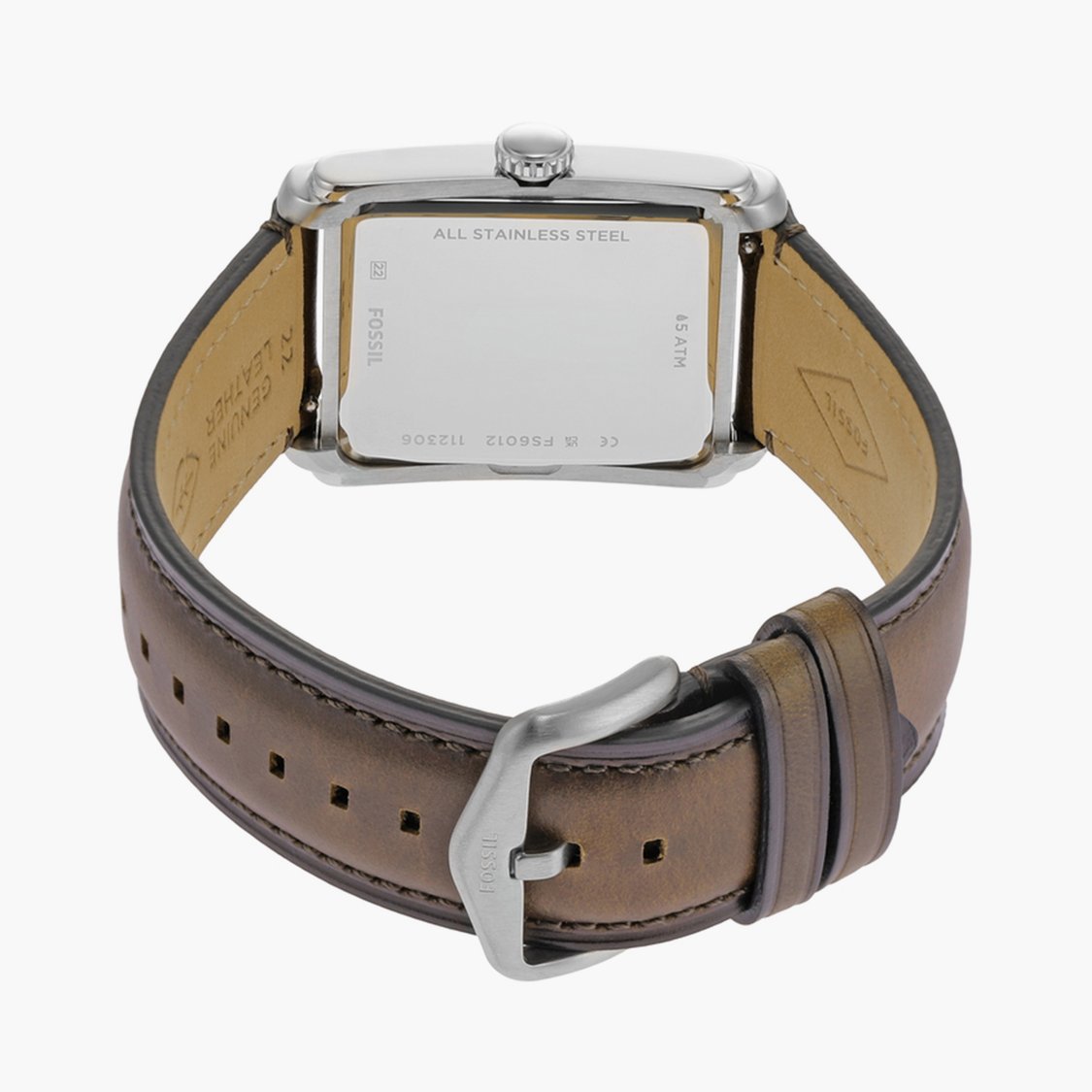 Make your presence felt with this classy 30mm timepiece. A rectangular dial housing a plain 3 hands mechanism with Roman indices makes this an enigmatic piece. The watch also features water resistance up to 50 meters and a sturdy leather strap with a buckle closure that ensures a secure fit.