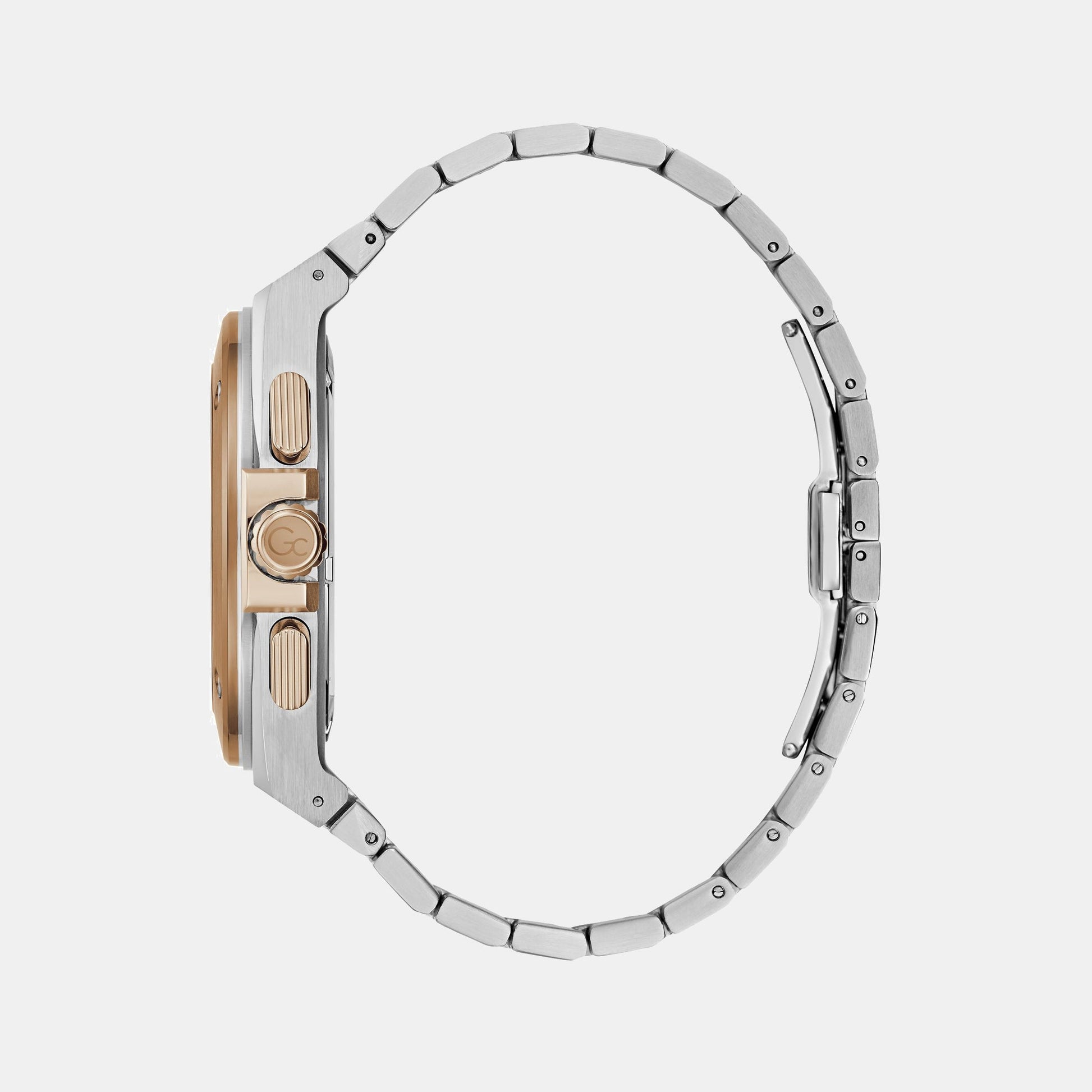 Command attention with this male chronograph featuring a round 44 mm case. The black dial, stainless steel construction, and chronograph display with quartz movement provide a bold and stylish appearance. The silver stainless steel strap (24 mm wide) and deployment clasp add a touch of luxury. With 10 ATM water resistance, this watch is suitable for casual occasions. Weighing 160 gm with an 11 mm case thickness, it comes with a 2-year warranty. Crafted in France.
