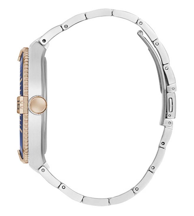 Make a distinct style statement by wearing this stylish Carryover Premier watch for men. It features a round dial and a bracelet band with a push-button clasp. This analog watch also flaunts a plain 3-hand with quartz movement and is 30 m water-resistant. Wear it to sport a casual yet chic look.