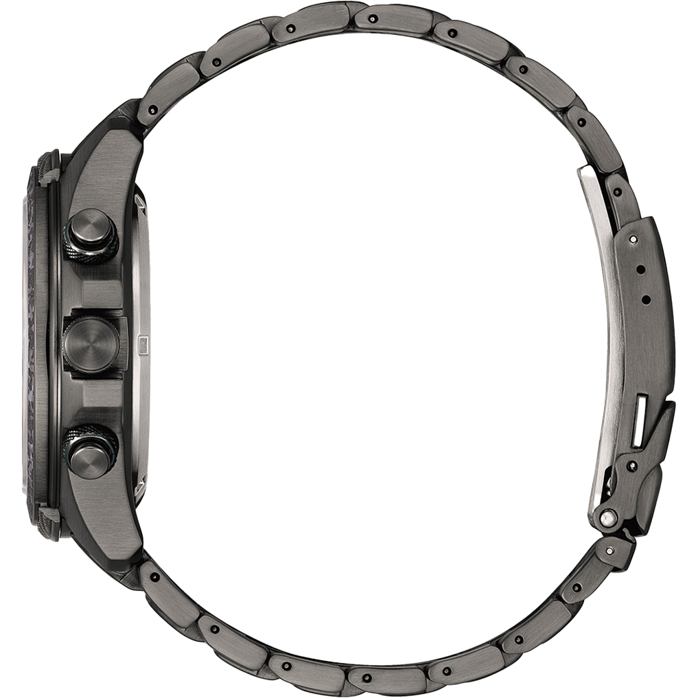 Capturing the essence of exploration in the air, on land, or at sea, the Promaster line celebrates its 35th anniversary of professional-grade adventure with a new limited edition series. This new Promaster Land joins the limited series, featuring purpose-built technology alongside gray camouflage detailing. From its bold case inward, the watch is ready for action, featuring a 43.9mm stainless steel case with a gray IP coating and camo accents for durability that goes the distance. On the dial, luminous hands and markers stand out on a camo black background for high legibility, while a combination of digital and analog details ensures mission-ready wear. Two right-side pushers and an 8 o'clock crown to move the watch's compass scale help the user operate Promaster’s high-performance function on the display, which includes a world time, chronograph, alarm, light level indicator, perpetual calendar, power save mode, charge level display, and summertime display. The limited edition Promaster is sustainably powered by any light with our proprietary Eco-Drive technology, so it never needs a battery. This high-performance watch comes with an interchangeable camo strap and an exclusive gray tackle box. Water resistant to 200 meters. Caliber U822. Limited to 5,900 unnumbered pieces worldwide.
