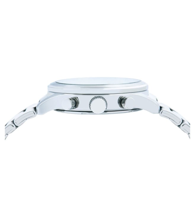 The Alba AT3K55X1 is a sophisticated mens chronograph featuring a silver-white dial with black subdials, housed in a 39mm stainless steel case. Powered by the Seiko VD53 quartz movement, it offers a 60-minute chronograph, date display, and 100-meter water resistance. Its polished stainless steel bracelet adds a touch of elegance, making it suitable for both formal and casual occasions.