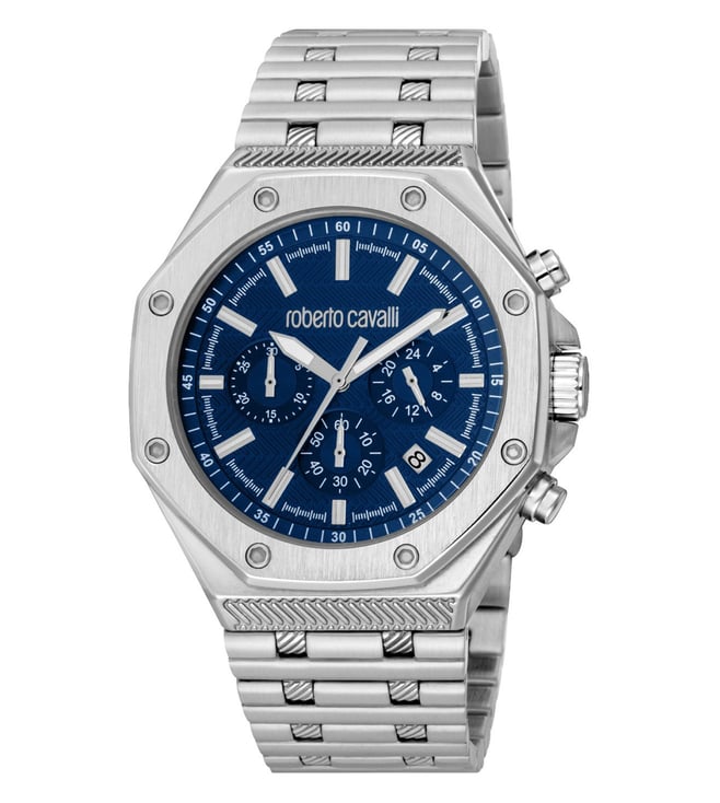 A classy look in a contemporary frame is what perfectly defines this men's analog watch from Roberto Cavalli. The dark blue round dial is protected by a mineral glass. The stainless steel strap comes in a silver hue that further elevates the look of the timekeeper. Besides, it is completed with a clasp to ensure a secure fit on the wrist.