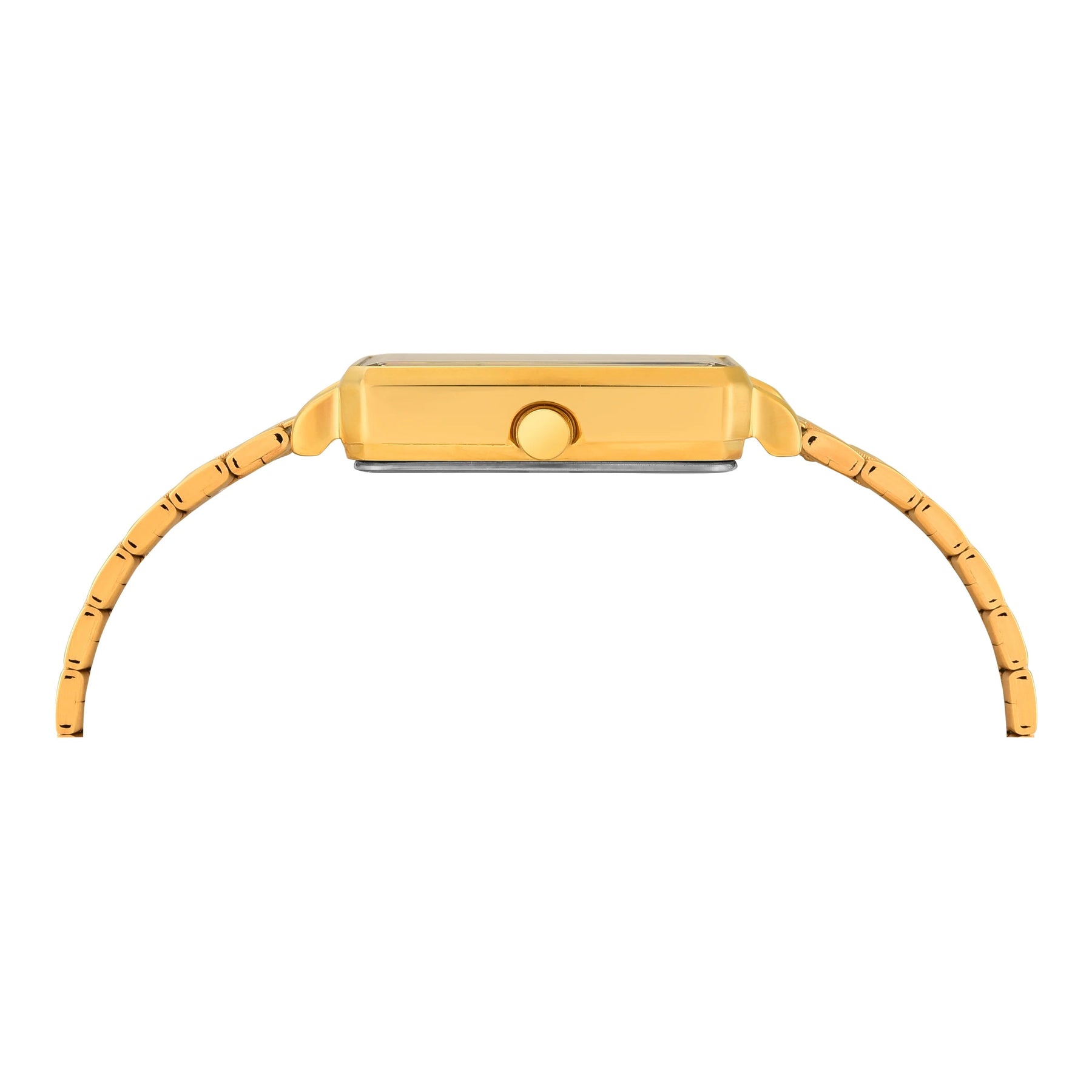 TIMEX Women Green Rectangle Dial Analog Watch - TWEL20802 Infuse class to your OCCASION attire with this women's analog watch by Timex. Secured by a mineral glass, the green rectangular dial is nestled in a 23.5 mm case. It exhibits plain three hands. The stainless steel strap exudes a gold hue that accentuates the look of the watch. Moreover, it is equipped with a push-button clasp to ensure a secure fit on the wrist. Buy Premium Watches For Men & Women At Krishna Watch Company Store Serving Since 1947 In Meerut. We are authorised retailer of 60+ watch brands including Rado, Tissot, Longines, Movado, Versace, Casio, Titan, FastTrack, Tommy Hilfiger, Fossil, Timex, police, Rayban, Vintage, Emporio Armani diesel, Anne Klein, Calvin Klein, Skagen, and Seiko etc.
