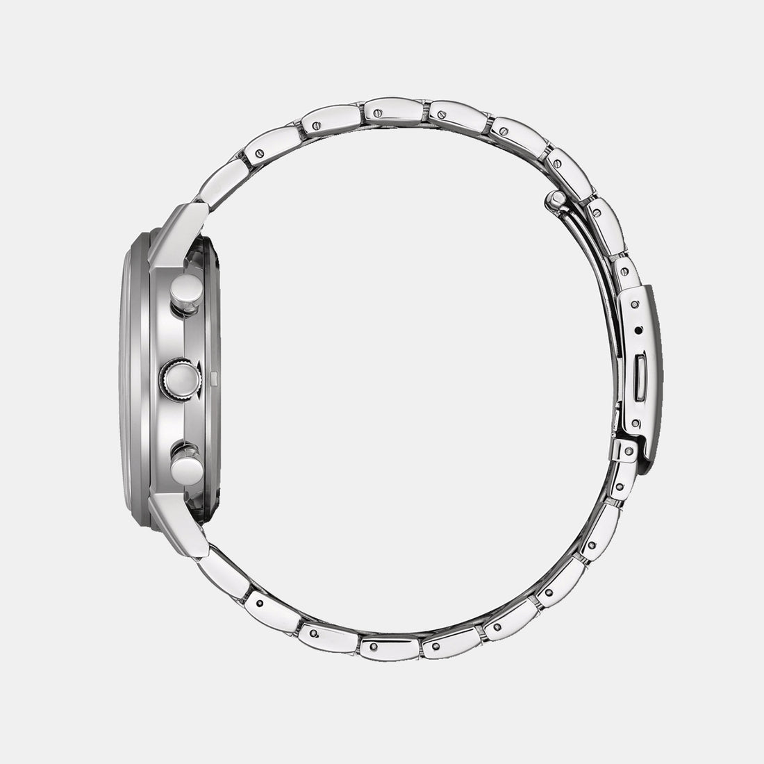 The Citizen CA4630-53A is a stylish men's watch with a 42mm stainless steel case and bracelet, featuring a clean white dial with easy-to-read Arabic numerals. It runs on Eco-Drive technology, meaning it charges with light and no regular battery replacement is required. The watch includes a stopwatch (chronograph) that measures up to 60 minutes, a date display, and is water-resistant up to 50 meters. It’s a perfect mix of elegance and everyday practicality.